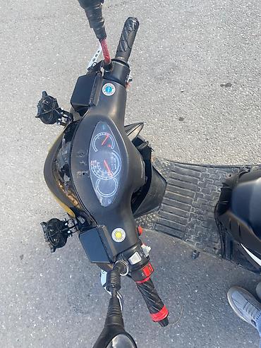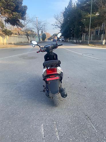 Skuter/Moped tipli motosiklet - Rəng: qırmızı-qara iki rəngli korpus - Kuzov: ön plastik kafel, aerodinamik dizayn, ayaqaltı platforma, arxa tutacaq - Təkərlər: yüngül lehimli disklər, ön disk əyl...