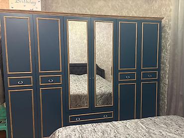 Yataq otağı dəsti – klassik krem-qızılı dizayn Komplekt: - 2 qapılı güzgülü qarderob (dolab ölçüsü: 200×160×47 sm; asılqan, rəf və bölmələr) - 2 ədəd tumbə - 3 çekmecəli komod - Başlıqla birlikdə ...