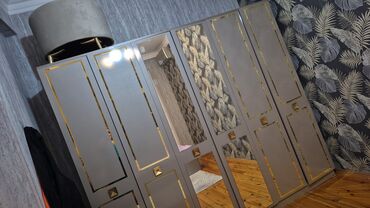 Yataq otağı dəsti Tərkib: - 6 qapılı qarderob: iki aynalı orta bölmə, qızılı dekor xətləri, uzun metal tutacaqlar. Geyimlər üçün asılqan bölməsi, rəflər və alt hissədə geniş yer. - Tək nəfərlik 2 ...
