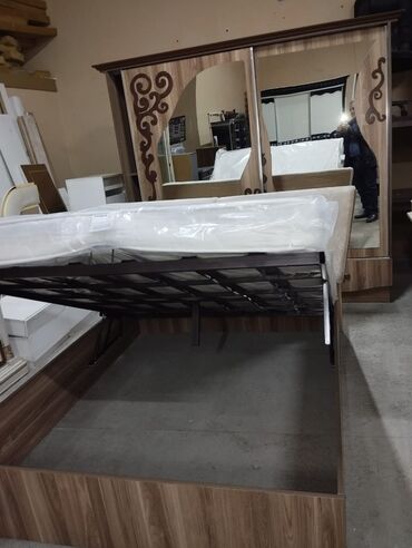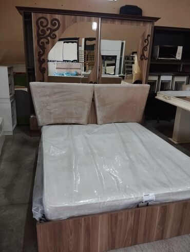Yataq otağı mebel dəsti ÇOX TƏCILI !!! ENDRIM OLUNDU.... Tərkib: - Yumşaq başlıqlı iki nəfərlik çarpayı (alt hissədə yığıma/saxlama bölməsi qaldırma mexanizmi ilə) - 2 ədəd tumbə (qızılı dekor...