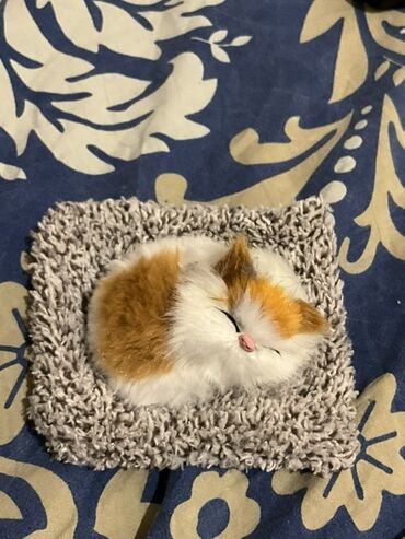 Dəstdə: 1 ədəd yatmış pişik fiquru + toxumalı döşəkçə. Plastik/tekstil və süni tüklü materiallardan hazırlanıb.