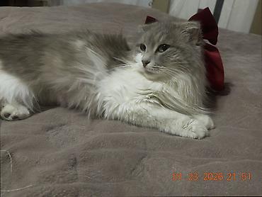 Rogdoll cinsi uzun tüklü, boz-ağ rəngli dişi pişik cütləşdirilir bala qarşılığında