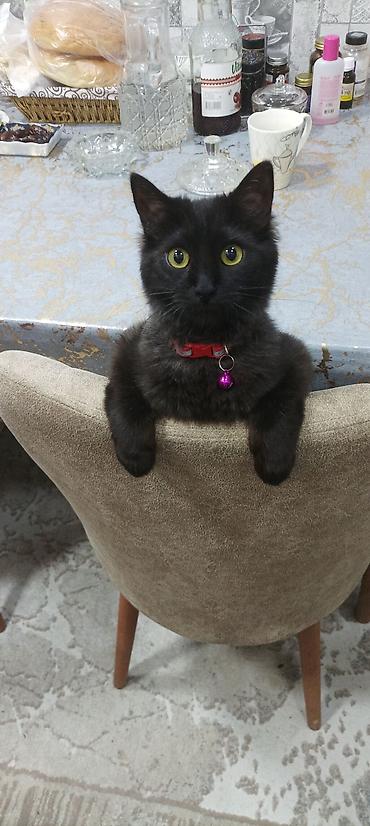 Qara pişik – ev heyvanı - Növ: pişik - Rəng: tam qara - Gözlər: qızılı tonlarda - Aksesuar: boynunda zəngli yaxalıq - Xarakter xüsusiyyətləri: sakit və mehriban görünüşlü, ev şəraitinə uyğun - Uyğ...