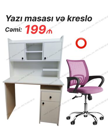 Masa dəsti – 65 AZN Komplekt: - 1 ədəd dördkünc masa - 4 ədəd taburet Dizayn və rənglər: - Ağ ayaqlar və korpus - Üst tabla müxtəlif rənglərdə: ağ, yaşıl, çəhrayı, sarı, mavi, boz, mermer naxışlı...