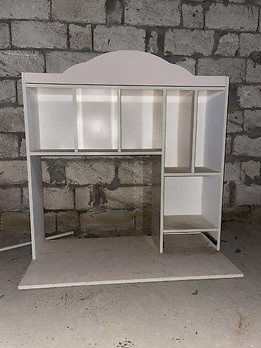 Ağ rəngdə uşağ üçün yazı masası. Bu masa asanlıqla yığılıb-sökülə bilən modul dizayna malikdir. Masanın üst hissəsində müxtəlif əşyaları yerləşdirmək üçün şelf bölmələri mövcuddur. Aşağı hissədə isə üç ədəd sürüşən siyirmə və bir qapılı dolab yerləşir. Bu masa dərs və ya iş üçün uyğundur.