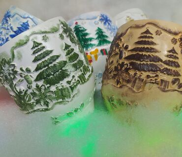 - Dizayn: qabın xarici səthində relyef/3D qış mənzərəsi – yolkanın, qar dənələrinin, hədiyyə qutularının və şam ağaclarının təsviri