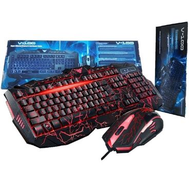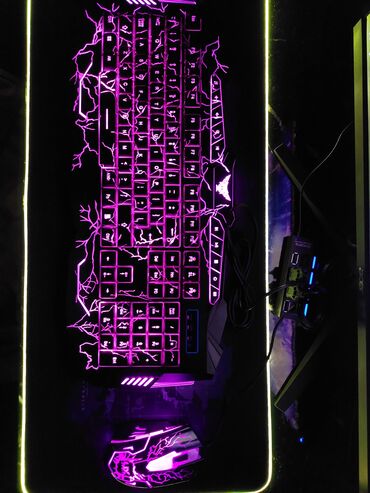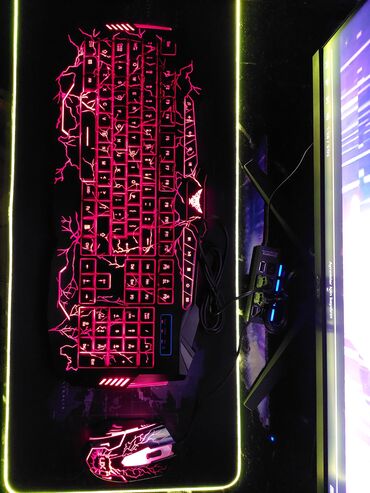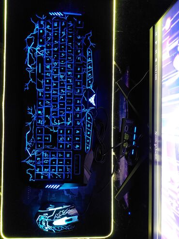 RGB işıqlı oyun klaviaturası + siçan + LED kənarlı mousepad seti - Tam ölçülü klaviatura: F1–F12 funksiyalar, tam rəqəm bloku, ox düymələri. - RGB arxa işıqlandırma: çoxrəngli işıq zolaqları və hə...