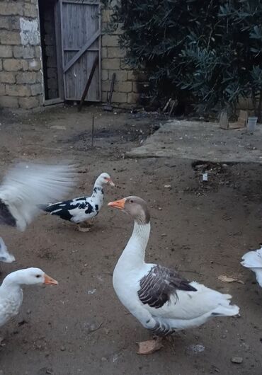 Qaz və ördək sürüsü satılır. 40 manat qazdir hər qiymətə də ördək var - Növlər: ağ və boz qazlar, həmçinin muskoviy (hind) ördəklər və ağ-qara rəngli ördəklər. - Say: fotoda çoxsaylı baş görünür; ...