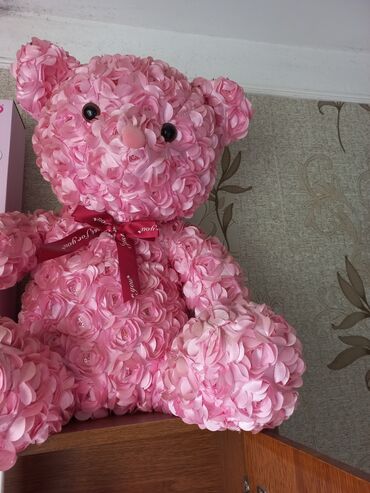 - 1 ədəd dekorativ “gül ayı” – tamamilə çəhrayı qızılgül formalı süni ləçəklərlə örtülmüş, qara gözlər, çəhrayı burun və “for you” yazılı lent ilə bəzədilmiş. Interyer üçün dekor məqsədli ideal seçimdir.