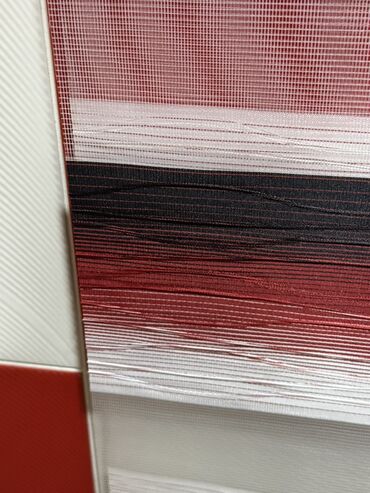 - Rəng və naxış: qırmızı, qara və ağ zolaqlı, teksturalı parça