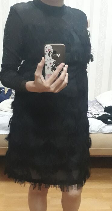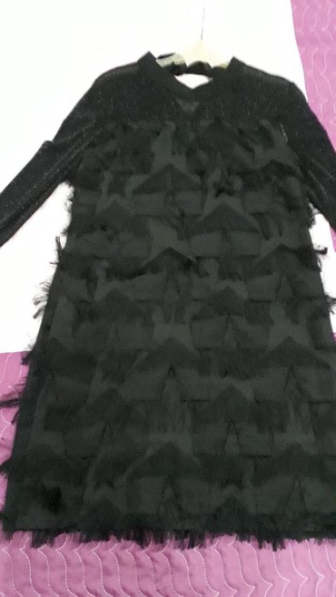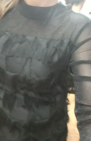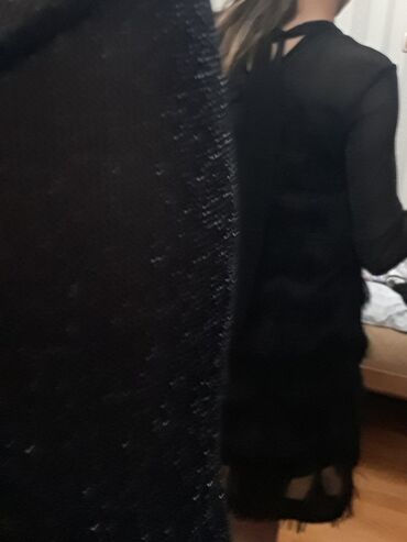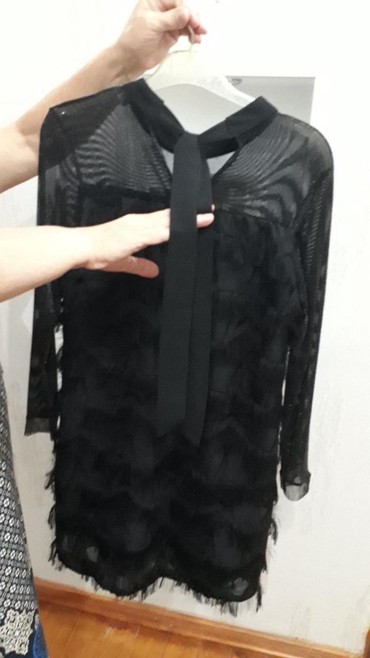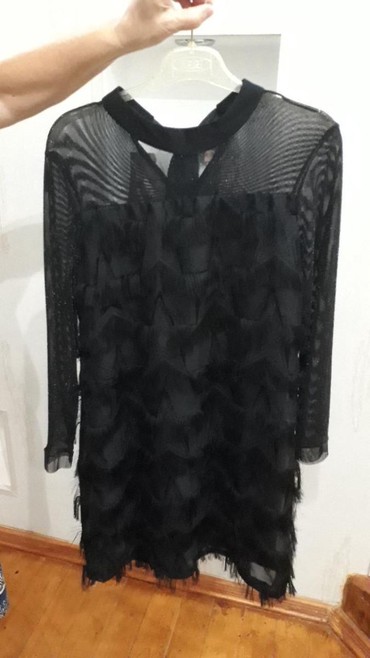 Qara zərif qadın donu - Rəng: qara - Model: qolsuz, beldən aşağısı qat-qat ətəkli - Material detalları: ətək hissəsində zolaqlı krujeva və şəffaf lent əlavələri; üst hissə hamar parça - Siluet: be...
