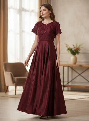 - Stil: Uzun, A-kəsimli ətək, qısaqol