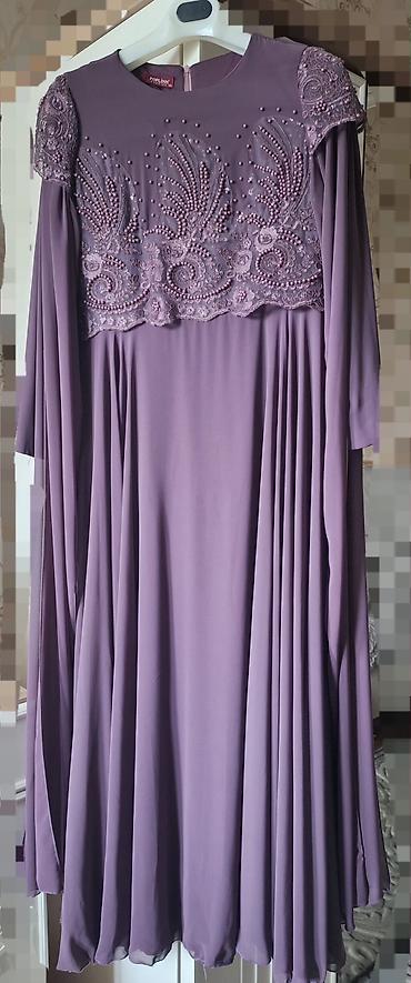 Bənövşəyi rəngdə, uzun qollu, axıcı kəsimli ziyafət/abiyə don. 44 razmerdir. 1 defe nisanda geyinilib.Cox yaxsi veziyyetdedir,Turkiyeden alinmisdir.