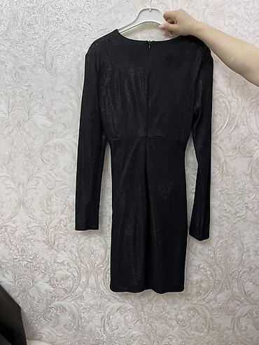 Qara məxmər don – şifon qol detallı - Model: dizdən aşağı uzunluqda, qolu uzun - Parça: əsas hissə yumşaq məxmər; qollar şəffaf şifondan - Dizayn: qollar xırda nöqtə (puanti) naxışlı, yüngül bufer...
