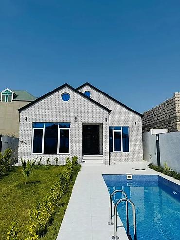 Satılır: Hovuzlu həyət evi - Fasadda ağ kərpic üslublu müasir bina