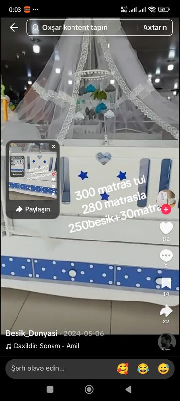 Uşaq beşiyi – COOL BABY markası Demək olar ki, işlənməyib, təptəzə qalıbdır. 270 manata alınmışdır. Xüsusiyyətlər: elektriklə yellənir, bir neçə yellənmə rejimi var. həmçinin uşağın yatması üçün yu...