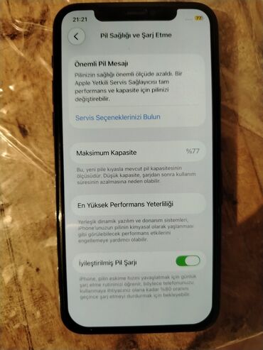 - Ekran görüntüsünə əsasən sistem “Pil sağlamlığının əhəmiyyətli ölçüdə azaldığını” bildirir; maksimum tutum 77% göstərilir.