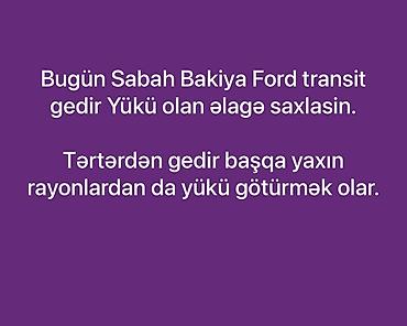 Yükdaşıma xidməti – Ford Transit - Marşrut: Bu gün-sabah Bakiya