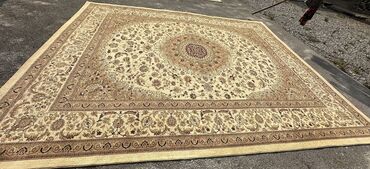 Açıq bej rəngdə, mürəkkəb naxışlı geniş xalça. Mərkəzində tünd bej tonlarında dairəvi medalyon təsvir edilmişdir. Xalçanın kənarları çiçək motivləri və mürəkkəb ornamentlərlə bəzədilmişdir. Bu xalça geniş otaqlar, qonaq otaqları və ya böyük zallar üçün uyğundur.3 ədəd mövcuddur .2 ədədinin ölçüsü4x5 böyük olan ,1 ədədinin ölçüsü isə4x4 kiçik olan ölçüyə uyğundur .Otaqlar kiçik olduğu üçün satılır