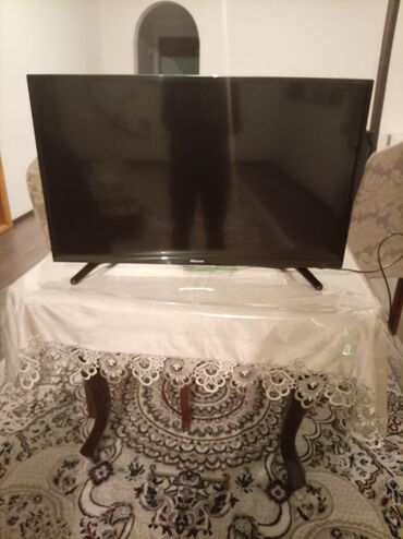 Hisense LED televizor - Ekran diaqonalı: təxmini 32–40 düym (şəkillərə əsasən) - Ekran tipi: LED, düz panel - Rəng: qara - Ayaqlı masaüstü quraşdırma (iki dayaqlı) - Arxa paneldə portlar: - HDMI...