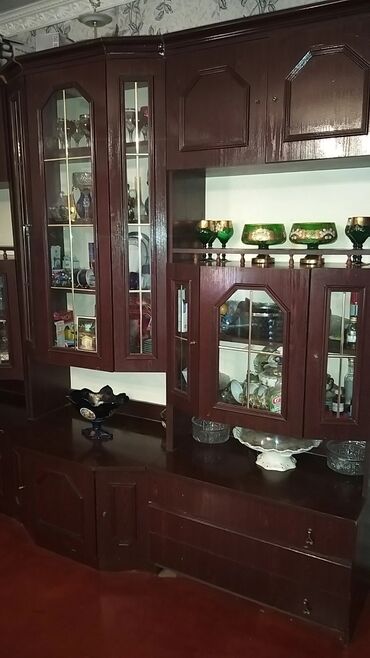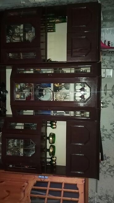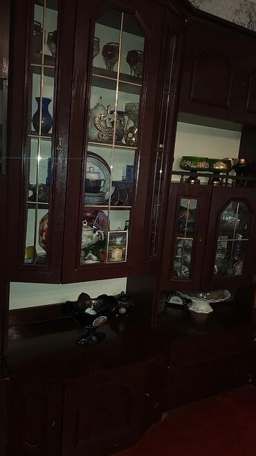 Klassik üslubda, şüşəli vitrinlər və çoxsaylı saxlama bölmələri ilə funksional və nümayişkaranə divar mebeli.