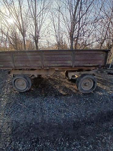 Təkərli qoşqu (traktor/pikap üçün) - Konstruksiya: möhkəm metal karkas, üstü açıq, 360° barmaqlıq yanlı. - Ölçü təxmini: orta ölçülü yük platforması; hündür yanlıq sayəsində həcmli yüklər üçün uyğ...