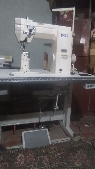 - Sənaye tipli tikiş maşını (fotodakı model DT‑S etiketlidir): Ağır və orta qalınlıqlı parça üçün düz tikiş mexanizmi, əl qolu ilə ayaq qaldırma sistemi, geniş iş səthi və ölçü cədvəli. Yağlama pəncərəsi, ip gərginliyi tənzimləyicisi və sürətli dəyişən ayaq sistemi mövcuddur.