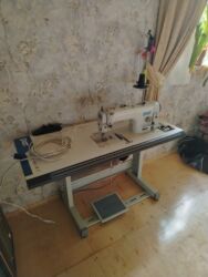 - Düz tikiş sənaye maşını – sabit metal korpus, iri iş masası, pedal idarəetməsi, iplik dayağı, işçi lampası üçün quraşdırma, uzun kabellə qoşulma imkanı.