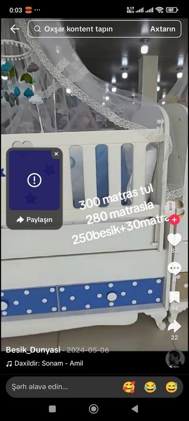 30 azn satilir.BesikUşaq otağı üçün çevrilə bilən beşik‑çarpayı dəsti