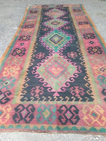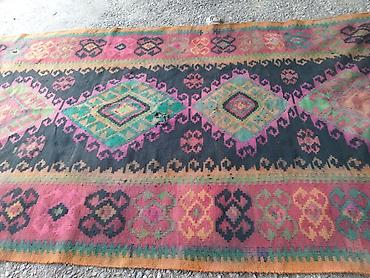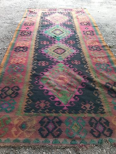 Əl toxuması xalça – rəngarəng kilim üslubu razılasma yolu ile - Material: təbii yun saplar - Toxuma növü: ikitərəfli kilim/flatweave - Naqış: mərkəzdə romb motivləri, iki tərəfdə “qoçbuynuzu” və s...