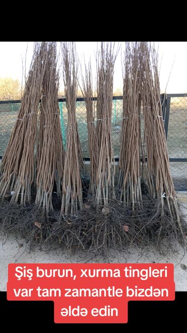 Qeyd: Şəkildə göstərilən elan mətni — “Şiş burun, xurma tingləri var tam zamanınla bizdən əldə edin”.
