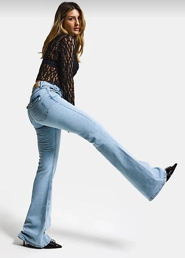 - Kəsim: baldırdan aşağıya doğru genişlənən (flared/bootcut) siluet – ayaqqabını elegant göstərir və boyu vizual uzadır.
