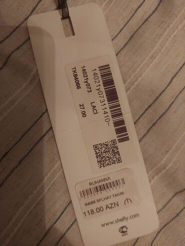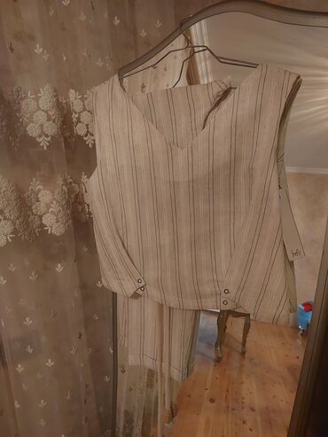 Dəstdi. Təzədi, geynilməyib. 40-46 razmerə kimi geyinilə bilər. 30 manat.