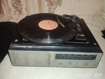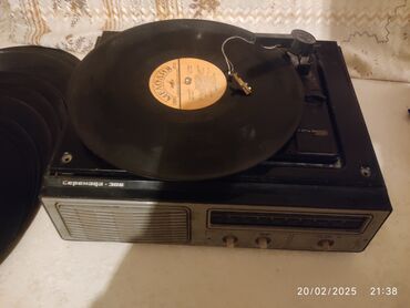 Serenada-406 məişət musiqi kombinə – quraşdırılmış radio + vinil plaştər. Xüsusiyyətlər: - Vinil pleyer: daşıyıcı panel, sap və iynə başlığı, tozdan qoruyan şəffaf qapaq. - Radio bloku: dalğa diap...