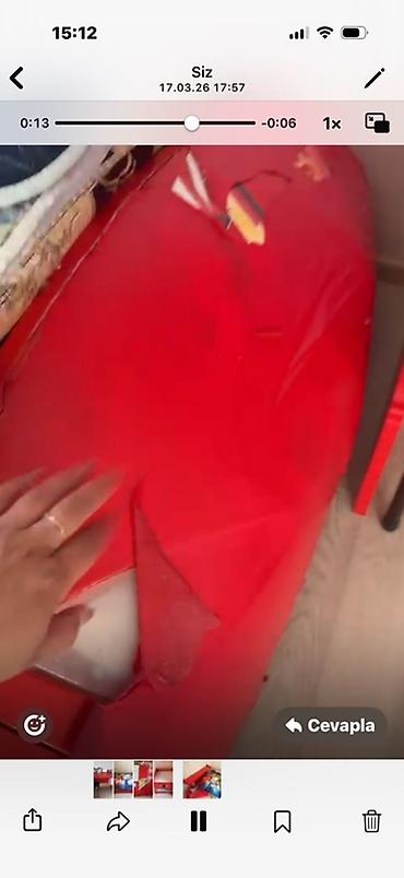 Qeyd: şəkillərdə bəzi hissələrdə dekor plyonkasının qopmuş sahələri və çarpayı karkasında tutucu/ayaq bərkidilmə nöqtəsi görünür.