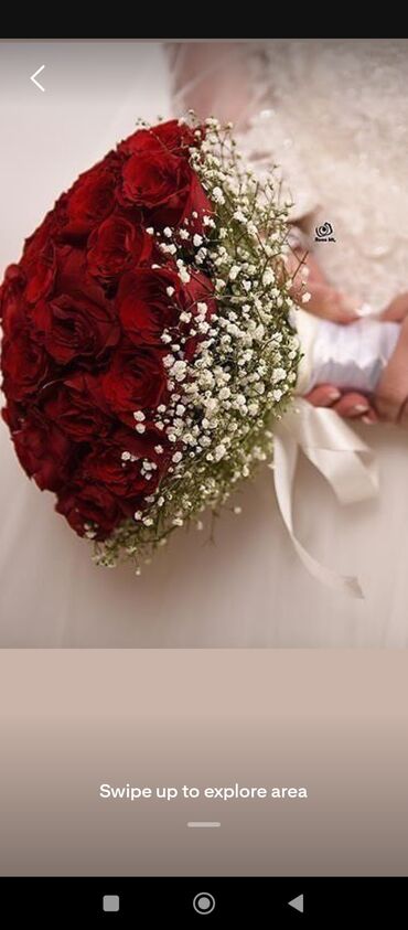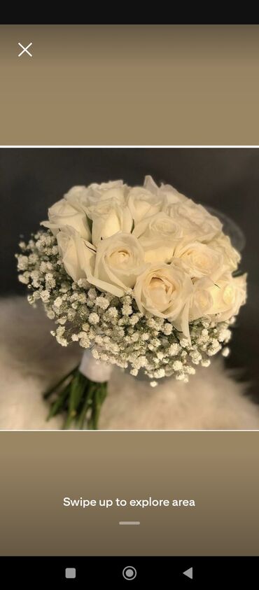 - Kompozisiya: sıx formada düzülmüş gül qönçələri (seçim: ağ və ya qırmızı), kənarları gipsofila (ağ “baby’s breath”) ilə zənginləşdirilmiş.