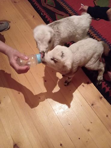 Məhsul: Quzu balaları (2 ədəd) Təsvir: - Şəkillərdəki quzu balaları südlə qidalanır, butulka ilə yemləməyə öyrəşiblər. - Ağ və krem rəng çalarlarında, xallı naxışları var. - Aktiv və çevikdirlər, ...