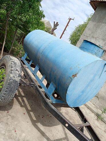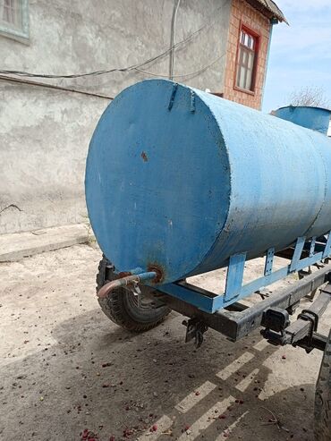 Kənd təsərrüfatı üçün qoşqu tipli vakuum-laynerli fekal/su çəni - Traktora qoşulan iki təkərli qoşqu şassisi - Silindrik metal çən, üstündə doldurma/çıxarma boruları - Kardan vallı (PTO) ötürücü i...