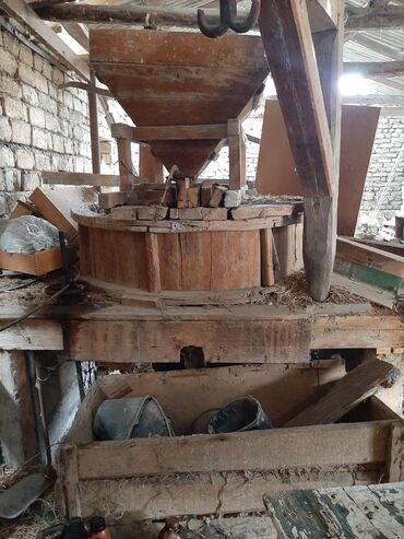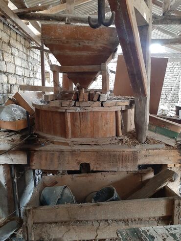 Taxta dəyirman komplekti – ənənəvi daş üyüdən Təsvir: - Taxıl, qarğıdalı və digər dənli bitkiləri üyütmək üçün klassik taxta dəyirman qurğusu. - Üst hissədə taxtadan hazırlanmış iri bunker/çuvalda...