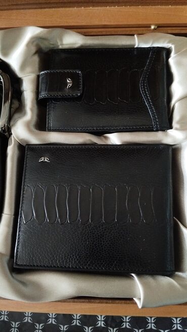 - Pul kisəsi (snap düyməli) – çoxşaxəli bölmələr, kart və kağız pullar üçün yuvalar; üst hissədə relefli tekstura və metal loqo bəzəyi.