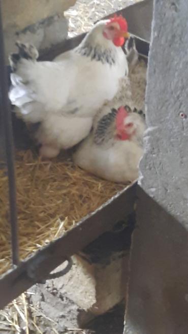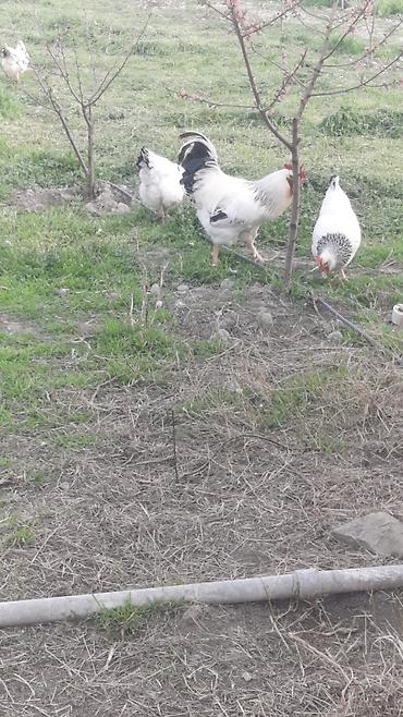 Ağ-qara ləçəklərlə yerli yumurta toyuqları