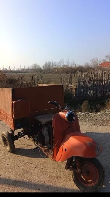 - Konstruksiya: Ön hissə skuter, arxa hissə metal yük platforması olan üçtəkərli quruluş