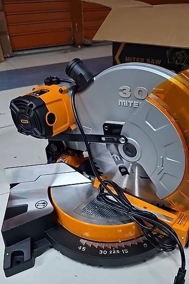 - Güclü elektrik mühərrikli, şəbəkə ilə işləyən künc kəsici (miter saw).