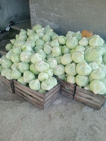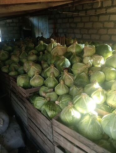 Məhsul: Ağ kələm (baş kələm) Təsvir: - Anbar şəraitində taxta yeşiklərdə çeşidlənmiş iri ölçülü ağ kələm başları - Yarpaqları sıx, başları bərk və simmetrik; kəsik saplaqlar təmizlənmiş - Salat, d...