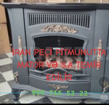 Hər növ sobaların təmiri iran və ya türk fərq eləmir zəmanətlə təmir edirik. Həmçinin ehtiyat hissələri ( zapçastları - içlik daş, iç şüşə, ön şüşə və s. ) İşiniz ən əsasə təhlükəsizliyinizi bizə ə...