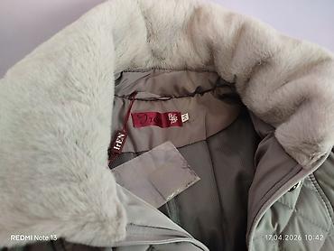 Qadınlar üçün zərif qış palto - Rəng: Açıq boz, bej qarışığı - Material: Yumşaq toxumalı parça, iç hissəsi romb naxışlı isti qat, təbii xəzli qol və boyun detayı - Yaxa və manjetlər: Tüklü (süni k...