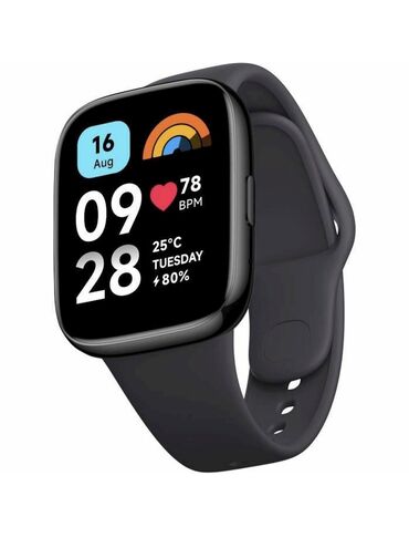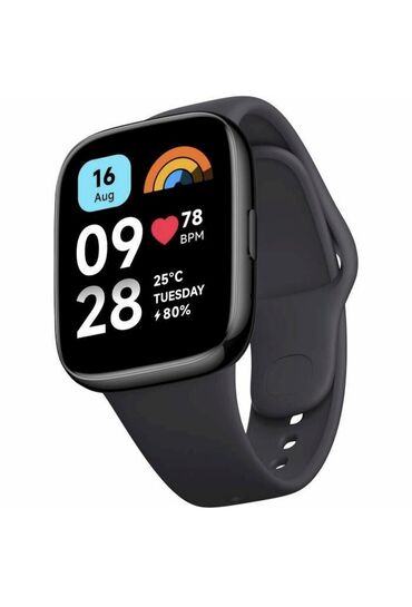 - Böyük rəngli toxunma ekranı: saat, tarix (16 Aug nümunə), gün və hava məlumatı (25°C), batareya faizi göstəricisi.