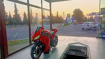 Qırmızı sport motosiklet