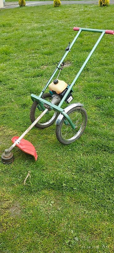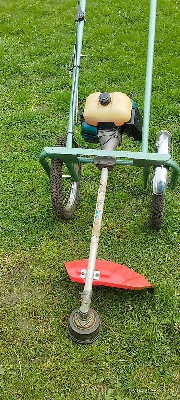- İki təkərli metal şassi üzərində yerləşdirilmiş benzin mühərrikli trimmer