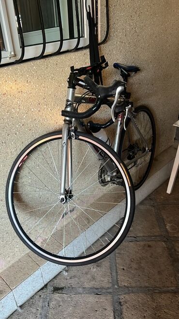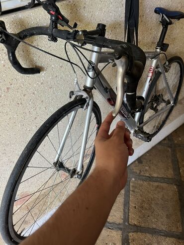 Satılır: Gitane yol velosipedi - Karkas: tam karbon (karbon lif quruluşu görünür), aerodinamik boru profilləri - Ölçü: 48 sm (etiketdə göstərilib) - Brend/seriya işarələri: Gitane, Cycleurope stik...